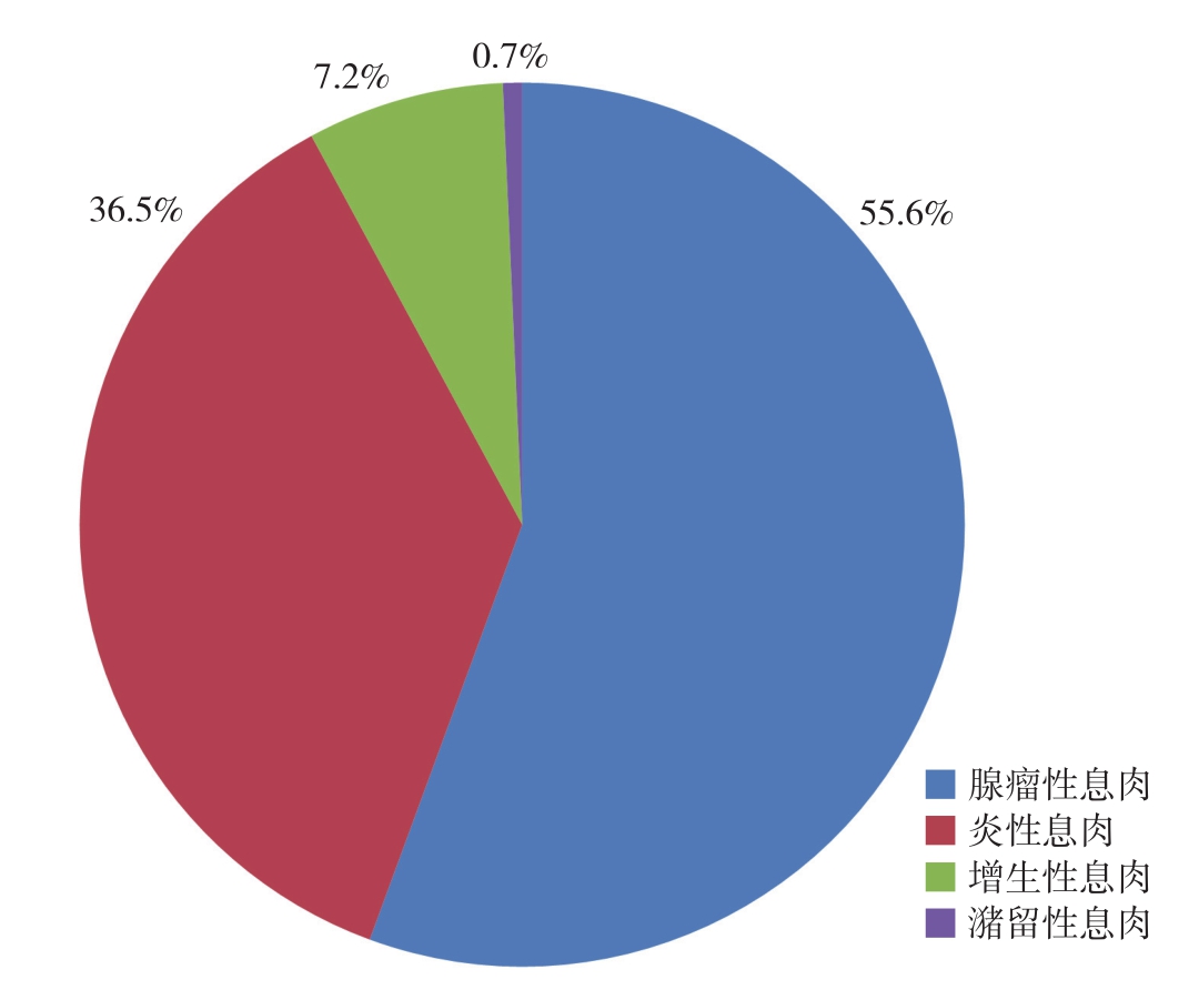 图1 体检人群结直肠息肉病理类型分布