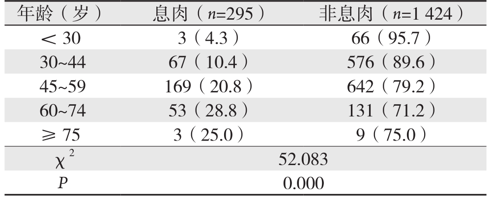 表2 不同年龄段直肠息肉检出率的差异[n(%)]