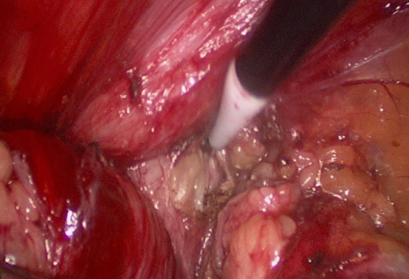 Figure 2 Loosing the upper border of the hernial ring to avoid injuries of the subabdominal vessels and spermatic cord