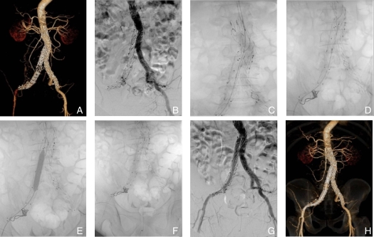 Abstract:Background and Aims Endovascular aneurysm repair (EVAR) has become the preferred treatment for abdominal aortic aneurysm (AAA) due to its minimally invasive nature and quick postoperative recovery. Iliac limb occlusion (ILO) is a common complication after EVAR, but its management poses many challenges. Therefore, this study was performed to explore the treatment strategies and risk factors for ILO following EVAR.Methods The clinical data of 14 cases of ILO that occurred after EVAR admitted to Department of Vascular Surgery, Hainan General Hospital/Hainan Affiliated Hospital of Hainan Medical University between August 2013 and August 2022 were retrospectively analyzed, and 435 EVAR cases without ILO during the same period served as a control to analyze the risk factors for developing ILO after EVAR.Results The average operative time for the 14 patients undergoing endovascular or hybrid surgery was (183.9±32.6) min, with intraoperative blood loss of (187.1±70.2) mL. Thrombus removal and restoration of intravascular blood flow were achieved through hybrid surgery in 10 cases. In two cases where hybrid surgery failed, bilateral femoral artery bypass grafting was performed. Another two cases underwent percutaneous mechanical thrombectomy using an aspiration catheter to restore intravascular blood flow. After thrombus removal from the iliac limb, balloon dilation and stent angioplasty were performed on the iliac limb and distal external iliac artery (EIA) for residual stenotic lesions. After the operation, ischemic symptoms in the lower limbs were relieved entirely in all patients. During the follow-up period, no recurrence of ischemic symptoms was observed. Univariate analysis indicated that factors such as the diameter of the proximal EIA (P=0.045), iliac artery tortuosity≥60°(P=0.003), iliac artery stenosis ≥50% (P=0.007), the distal portion of the iliac limb graft anchoring to the EIA (P=0.015), and the oversize rate of the distal iliac limb graft ≥15% (P=0.028) were associated with the occurrence of ILO after EVAR.Conclusion Endovascular or hybrid surgery is the preferred treatment for ILO following EVAR. Attention should be paid to the risk factors for ILO, and proactive prevention should be undertaken during EVAR planning and operation.