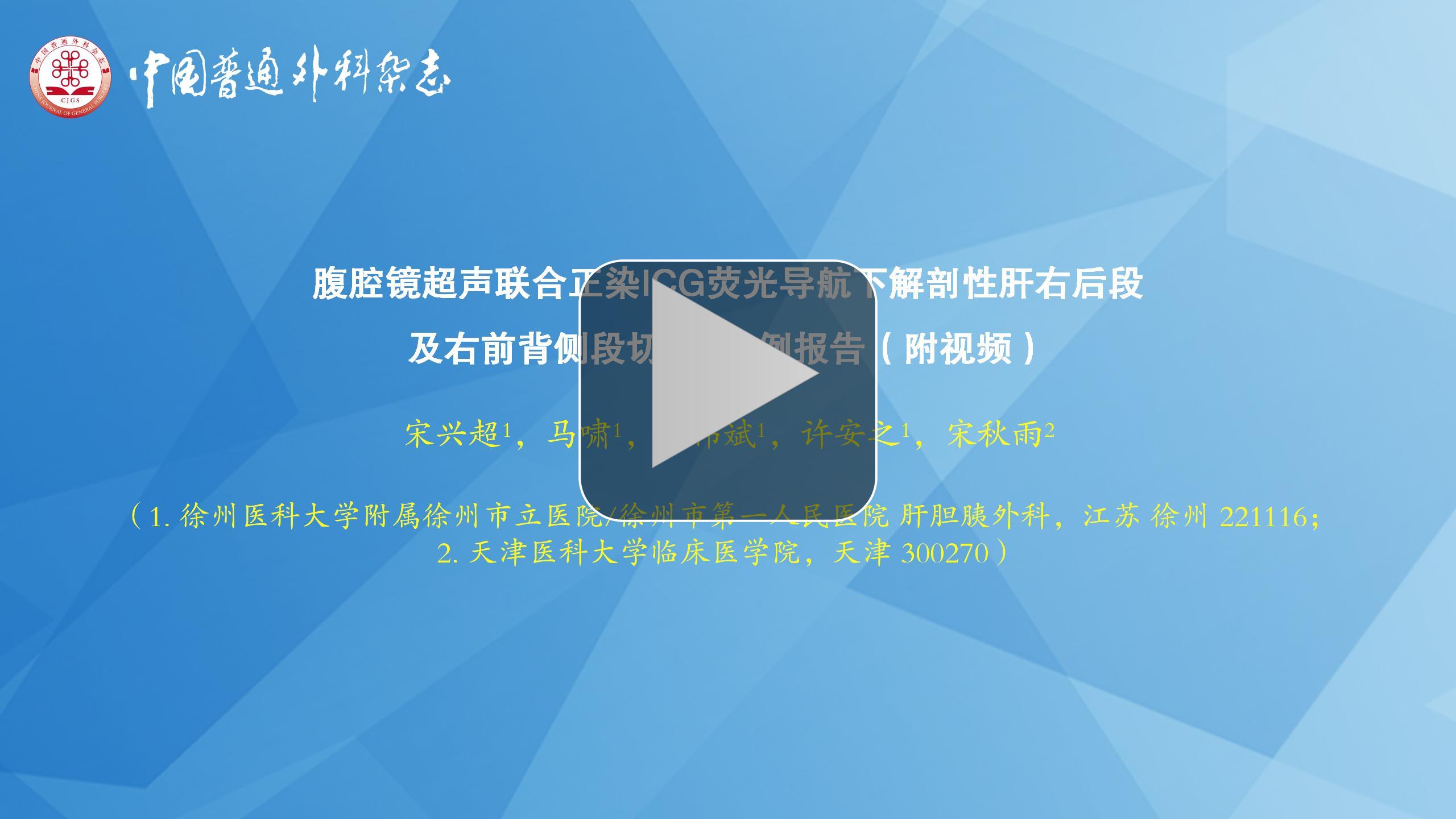Abstract:Background and Aims Laparoscopic anatomical liver segmentectomy has been widely applied in the surgical treatment of hepatic tumors due to its safety, feasibility, and effectiveness. The combination of indocyanine green (ICG) fluorescence-guided positive staining and intraoperative laparoscopic ultrasound has become an important technique for precision liver resection, particularly in accurately delineating hepatic segment/subsegment boundaries and achieving negative surgical margins. This study reports a case of anatomical resection of the right posterior segment and the dorsal subsegment of the right anterior segment of the liver, guided by laparoscopic ultrasound combined with ICG positive staining, to evaluate its clinical feasibility and outcomes.Methods A retrospective analysis was conducted on an elderly female patient with a hepatic space-occupying lesion who underwent laparoscopic anatomical resection of the right posterior segment and right anterior dorsal subsegment using intraoperative ultrasound combined with ICG fluorescence-guided positive staining.Results Preoperative three-dimensional reconstruction revealed that the tumor was located in the right posterior segment and right anterior dorsal subsegment. Intraoperatively, under laparoscopic ultrasound guidance, the anterior-ventral branch of the right portal vein was punctured and injected with ICG to achieve precise staining of the right anterior-ventral subsegment. The resection was performed along the fluorescent boundary, enabling accurate anatomical removal of the targeted liver segments. Intraoperative blood loss was approximately 100 mL without transfusion. Pathology confirmed a moderately differentiated small-duct type intrahepatic cholangiocarcinoma with negative margins (R0 resection). The patient recovered well and was discharged on postoperative day 19. Follow-up CT at 6 months showed no evidence of recurrence.Conclusion During anatomical resection of the right posterior segment and right anterior dorsal subsegment of the liver, laparoscopic ultrasound combined with ICG fluorescence-guided positive staining can accurately define segmental boundaries, enhance surgical safety, and ensure complete tumor resection, thus offering significant value in achieving R0 resection.