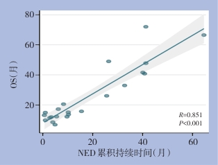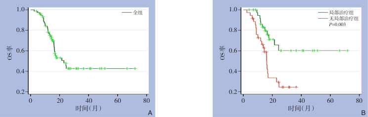 Abstract:Background and Aims CNLC stage IIIb hepatocellular carcinoma (HCC) is often accompanied by extrahepatic metastases and carries a poor prognosis. The optimal treatment strategy for these patients remains controversial, and the role of local therapy lacks robust evidence. This study aimed to compare overall survival (OS) between patients receiving combined local and systemic therapy versus systemic therapy alone, and to assess the prognostic impact of oligometastatic status and the cumulative duration of no evidence of disease (NED).Methods A retrospective analysis was conducted on 76 CNLC stage IIIb HCC patients treated at Xiangya Hospital from January 2017 to December 2023. Forty patients received systemic therapy plus local therapy (local therapy group), and 36 received systemic therapy alone (no local therapy group). OS was compared between the two groups. Subgroup analyses were performed for oligometastatic and non-oligometastatic patients to evaluate the benefit of local therapy. In the local therapy group, the correlation between cumulative NED duration and OS was also examined.Results The 1-, 2-, 3-, and 5-year OS rates were 89.0% vs. 66.7%, 64.3% vs. 25.6%, 35.3% vs. 8.7%, and 8.3% vs. 0.0% for the local therapy and no local therapy groups, respectively, with a statistically significant difference (P=0.003). Among oligometastatic patients, the local therapy group had significantly better OS than the no local therapy group (P=0.008), whereas no significant difference was observed in non-oligometastatic patients (P>0.05). Multivariate analysis identified oligometastases as an independent prognostic factor (HR=2.213, P=0.045). In the local therapy group, cumulative NED duration was strongly correlated with OS (r=0.851, P<0.001). Local therapy was well tolerated, with no treatment-related deaths observed.Conclusion For CNLC stage IIIb HCC patients with well-controlled intrahepatic disease, local therapy can significantly prolong survival, particularly in those with oligometastases. Achieving and maintaining NED may represent an important therapeutic goal in this patient population.