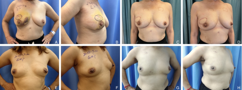 Abstract:Background and Aims Oncoplastic breast-conserving surgery (OBCS) integrates oncologic and plastic surgical techniques and includes two primary approaches: volume displacement and volume replacement. The pedicled lateral thoracic artery perforator (LTAP) flap is a commonly used technique for volume replacement. Although recent studies in China have confirmed its safety in OBCS, its patient-reported outcomes have not been systematically evaluated, and comparative data with volume displacement techniques remain lacking. Therefore, this study was performed to compare the clinical outcomes and patient satisfaction of LTAP flap versus mammoplasty (volume displacement) in OBCS, to inform surgical decision-making.Methods A retrospective case-control study was conducted, including 106 patients with unilateral stage 0-Ⅲ breast cancer who underwent OBCS at the Affiliated Hospital of Southwest Medical University from January 2023 to June 2024. Patients were divided into the LTAP flap group (27 cases) and the mammoplasty group (79 cases) based on the surgical technique. Intraoperative variables, cosmetic outcomes, postoperative complications, and Breast-Q scores before and after surgery were compared between the two groups.Results There were no significant differences between the two groups in clinicopathological characteristics or preoperative Breast-Q scores (all P>0.05). The LTAP group had longer operative times, larger excised tissue volumes, and greater postoperative drainage volumes (all P<0.001). Postoperative cosmetic outcomes were significantly better in the LTAP group, with a higher rate of excellent-to-good cosmetic results (88.9% vs. 57.3%) and higher Breast-Q scores in breast satisfaction, psychosocial well-being, and physical well-being (all P<0.05). There were no significant differences in complication rates or local recurrence between the two groups (all P>0.05).Conclusion In OBCS, the LTAP flap demonstrates comparable safety to mammoplasty while achieving superior cosmetic outcomes and patient satisfaction. It is particularly suitable for patients with small breast volumes requiring large tissue excision and holds promise for broader clinical application.