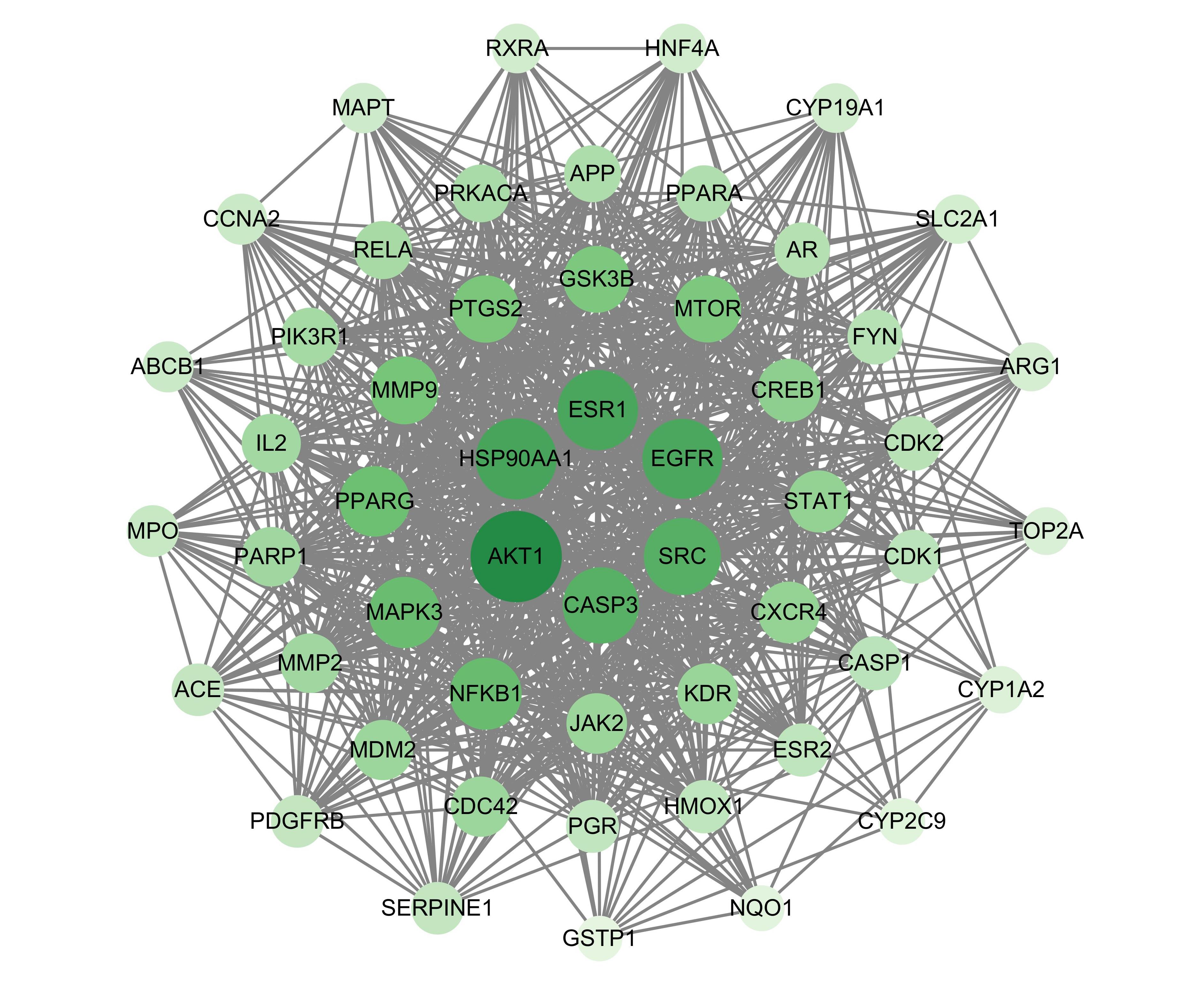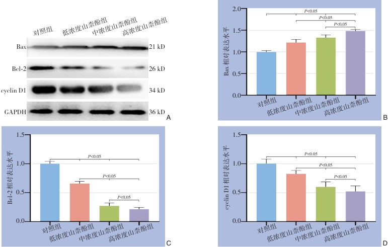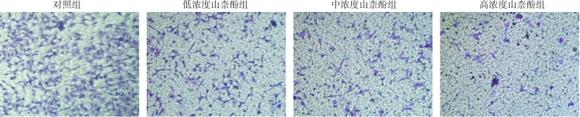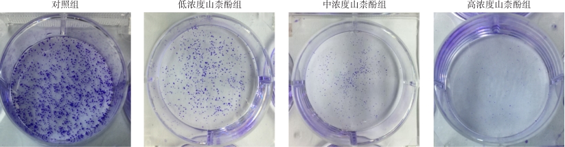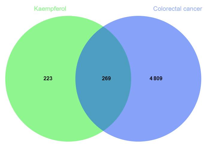 Abstract:Background and Aims Colorectal cancer (CRC) has a high incidence and mortality rate, and the effectiveness of current therapies for advanced cases remains limited. Kaempferol, a natural flavonoid compound, exhibits antioxidant, anti-inflammatory, and antitumor properties. This study aimed to elucidate the key molecular targets and underlying mechanisms of kaempferol against CRC through an integrated approach combining network pharmacology and experimental validation.Methods Potential targets of kaempferol were identified via SwissTargetPrediction, SEA, PharmMapper, and TargetNet databases, and CRC-related targets were retrieved from GeneCards, OMIM, CTD, and DrugBank. The intersection targets were used to construct a compound-target-disease network. Protein-protein interaction (PPI) analysis using the STRING database and Cytoscape software identified core targets, followed by Gene Ontology (GO) and Kyoto Encyclopedia of Genes and Genomes (KEGG) enrichment analyses. In vitro experiments with human CRC HCT-116 cells evaluated cell proliferation (CCK-8 assay), colony formation, migration (scratch assay), invasion (Transwell assay), and expression of apoptosis- and cell cycle-related proteins (Western blot).Results A total of 492 kaempferol targets and 5 078 CRC-related targets were obtained, with 269 overlapping targets identified as potential therapeutic candidates. PPI network analysis revealed 53 core targets, including Akt1, HSP90AA1, ESR1, SRC, CASP3, and NFKB1. GO analysis indicated enrichment in cellular stress response, apoptosis regulation, and oxidative stress processes; KEGG pathways were primarily related to chemical carcinogenesis-receptor activation, prolactin, estrogen, and PI3K/Akt signaling. Experimental validation demonstrated that kaempferol markedly inhibited HCT-116 cell proliferation, colony formation, migration, and invasion in a dose-dependent manner (all P<0.05), accompanied by downregulation of Bcl-2 and cyclin D1 and upregulation of Bax (all P<0.05).Conclusion Kaempferol exerts anti-CRC effects through multi-target and multi-pathway mechanisms, including inhibition of proliferation, migration, and invasion, and induction of apoptosis, potentially via modulation of the PI3K/Akt and estrogen signaling pathways. These findings provide theoretical and experimental evidence supporting kaempferol as a promising candidate for CRC therapy.