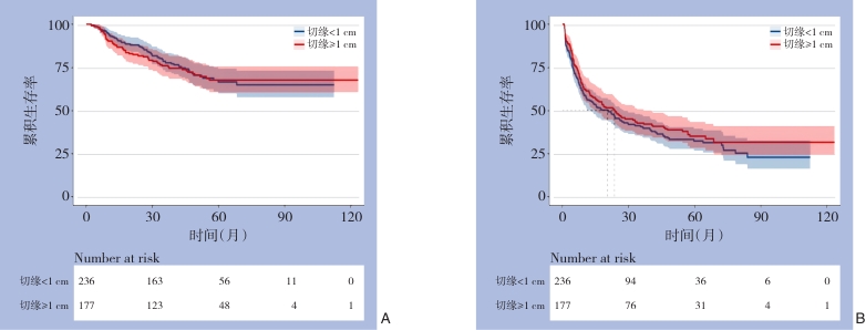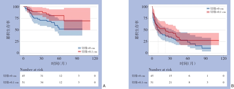 Abstract:Background and Aims Conversion therapy offers initially unresectable hepatocellular carcinoma (HCC) patients a chance for curative resection. However, the optimal margin width following conversion remains unclear. This study aimed to evaluate the impact of surgical margin width on prognosis and identify independent prognostic factors in HCC patients undergoing hepatectomy after conversion therapy.Methods A retrospective analysis was performed on 413 patients with initially unresectable HCC who received conversion therapy and underwent radical resection at Cancer Prevention and Control Center of Sun Yat-sen University between February 2015 and June 2022. According to the intraoperatively measured pathological margin, patients were classified into two groups: tumor margin <1 cm and ≥1 cm, and further divided into subgroups with margins of 0 cm, 0.1 cm, and >0.1 cm to compare survival differences among groups. The Kaplan–Meier method and Cox proportional hazards model were used to evaluate disease-free survival (DFS), overall survival (OS), and their influencing factors.Results The 3-year OS and DFS showed no significant difference between the <1 cm and ≥1 cm groups (both P>0.05). However, patients with a 0 cm margin had significantly worse OS than those with a 0.1 cm margin (P=0.048). No significant survival difference was observed in OS and DFS between the 0.1 cm and >0.1 cm groups (both P>0.05). Multivariate analysis identified multiple tumors, poor differentiation, and microvascular invasion as independent adverse prognostic factors for both OS and DFS (all P<0.05), whereas targeted therapy was an independent protective factor for DFS (P=0.014).Conclusion A pathological margin ≥0.1 cm provides comparable survival to wider margins and can be considered a safe threshold for HCC patients undergoing hepatectomy after conversion therapy. The conventional 1 cm margin standard offers no additional benefit. Multiple tumors, poor differentiation, and microvascular invasion predict poor prognosis, while targeted and immunotherapy during conversion may improve long-term outcomes.