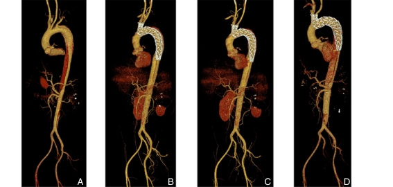 Abstract:Background and Aims Thoracic endovascular aortic repair (TEVAR) has become an important minimally invasive treatment for thoracic aortic diseases. However, management of complex aortic arch lesions requiring a proximal landing zone in zone 0 (Z0) remains technically challenging due to the need for supra-aortic branch reconstruction. The Castor single-branched stent-graft enables integrated reconstruction of the left common carotid artery (LCCA), but its application in Z0 TEVAR often necessitates adjunctive techniques for innominate artery (IA) revascularization. This study aimed to preliminarily evaluate the technical feasibility and short-term outcomes of Z0 TEVAR using a Castor branched stent-graft for LCCA reconstruction combined with an IA chimney stent.Methods Patients with aortic pathologies who underwent Z0 TEVAR using a Castor branched stent-graft for LCCA reconstruction combined with an IA chimney stent at the Second Xiangya Hospital of Central South University between February and June 2024 were retrospectively reviewed. Perioperative data and follow-up outcomes were analyzed. Primary endpoints included technical success, perioperative complications, and patency of reconstructed supra-aortic branches. Concomitant left subclavian artery (LSA) revascularization was determined on an individualized basis according to preoperative imaging findings.Results Six patients (mean age 51.5 years; 5 males) were included, with underlying pathologies comprising aortic dissection (n=4), aortic arch aneurysm (n=1), and penetrating aortic ulcer (n=1). All procedures were successfully completed, yielding a technical success rate of 100%. Concomitant LSA revascularization was performed in three patients. No mortality, stroke, spinal cord ischemia, endoleak, retrograde type A aortic dissection, stent migration, or upper extremity ischemia occurred within 30 days postoperatively. During a median follow-up of 13 months (range, 11-15 months), no major adverse cardiovascular or cerebrovascular events or stent-related complications were observed. Imaging follow-up demonstrated 100% patency of the IA, LCCA, and reconstructed LSA.Conclusion In a small, carefully selected cohort, Z0 TEVAR using a Castor branched stent-graft for LCCA reconstruction combined with an IA chimney stent is technically feasible and associated with favorable short-term branch patency. Further studies with larger sample sizes and longer follow-up are required to validate its safety and long-term efficacy.