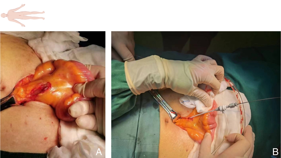 摘要:背景与目的 急性门静脉血栓形成可导致肠坏死、消化道大出血等严重并发症,单纯抗凝治疗的血栓再通率有限。本文总结经腹小切口直视下穿刺肠系膜上静脉,联合AngioJet溶栓吸栓及球囊扩张治疗急性门静脉血栓形成的临床效果与安全性。方法 回顾性分析2023年7月—2024年12月北京大学人民医院收治的10例急性肠系膜上静脉-门静脉血栓形成患者。所有患者均在全麻下经腹正中小切口直视穿刺肠系膜上静脉,应用AngioJet机械溶栓吸栓联合球囊扩张成形治疗。记录术中即刻血栓清除率、围术期并发症及随访期门静脉系统再通情况。结果 10例患者手术时间中位数为140(110~245)min,不含AngioJet系统相关出血的中位术中出血量为80(50~200)mL;AngioJet机械血栓抽吸系统血栓抽吸时间173(138~296)s。术后即刻血栓清除率Ⅲ级7例,Ⅱ级3例,手术技术成功率为100%。围术期并发症包括腹腔出血1例、切口血肿1例,均经处理后好转。所有患者术后腹痛症状明显缓解,无肠坏死、肠梗阻及急性肾功能不全发生。中位随访时间5个月,门静脉系统完全再通5例,部分再通4例,血栓稳定1例,无血栓新发或复发,随访期内无抗凝相关出血及死亡。结论 经腹直视下穿刺肠系膜上静脉,联合AngioJet溶栓吸栓及球囊扩张治疗广泛急性门静脉-肠系膜上静脉血栓形成安全、有效,可迅速恢复门静脉系统血流,缓解症状并避免肠坏死。