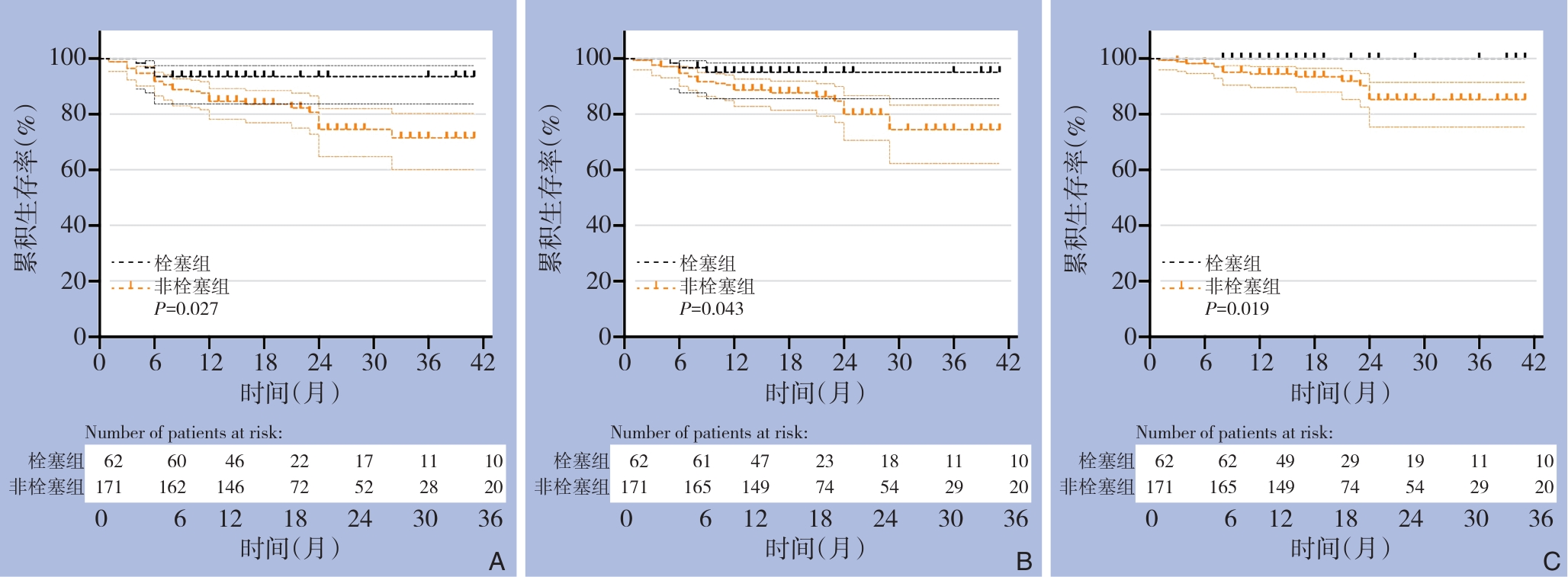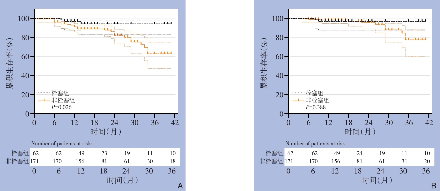 摘要:背景与目的 Ⅱ型内漏是腹主动脉瘤腔内修复术(EVAR)后最常见的并发症之一,与术后瘤体持续增大及再干预密切相关。肠系膜下动脉(IMA)是Ⅱ型内漏的重要血流来源,其预防性栓塞的临床价值尚存争议。本研究旨在评估预防性IMA栓塞对EVAR患者术后内漏、瘤体变化及再干预的影响。方法 回顾性分析2022年1月—2024年1月接受EVAR治疗的肾下腹主动脉瘤患者,根据是否行预防性IMA栓塞分为栓塞组和非栓塞组。比较两组患者术前基线资料、围术期情况及随访结局。采用Kaplan-Meier法分析无内漏生存率、无Ⅱ型内漏生存率、免于瘤体增大生存率及免于再干预生存率。结果 共纳入233例患者,其中62例接受预防性IMA栓塞。栓塞组与非栓塞组在术前基线特征及瘤体解剖学参数方面差异无统计学意义(均P>0.05)。平均随访(19.6±9.7)个月。与非栓塞组相比,栓塞组术后2年无内漏生存率(93.55% vs. 74.53,P=0.027)、无Ⅱ型内漏生存率(95.11% vs. 80.02,P=0.043)、无IMA相关Ⅱ型内漏生存率(100.0% vs. 85.26,P=0.019)及免于瘤体增大生存率(94.27% vs. 81.96,P=0.026)均明显提高。两组在术后再干预率方面差异无统计学意义(P=0.388)。结论 预防性IMA栓塞可显著降低EVAR术后内漏,尤其是IMA相关Ⅱ型内漏的发生,并有助于抑制瘤体增大,但对降低再干预率的作用尚不明确,仍需大样本、长期随访研究进一步验证。