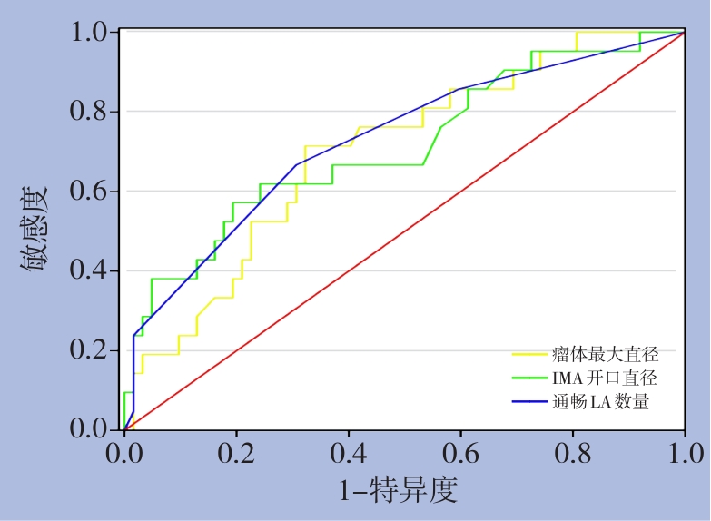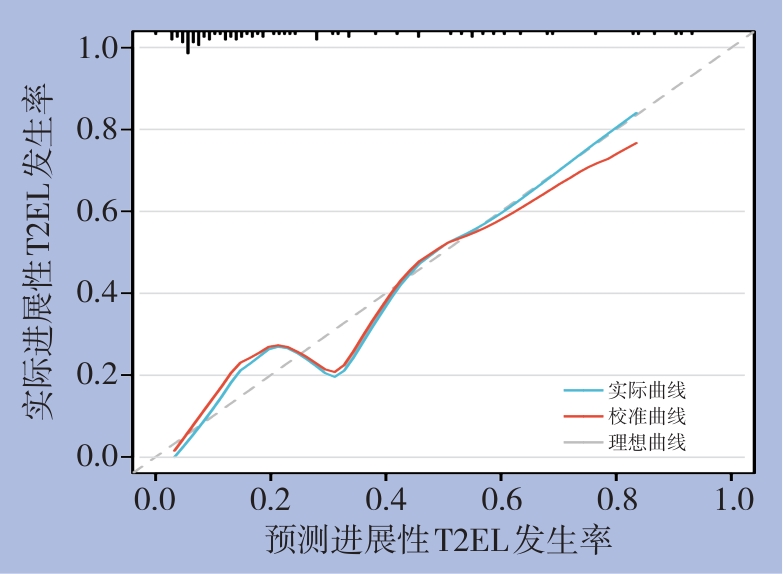 摘要:背景与目的 Ⅱ型内漏(T2EL)是腹主动脉瘤腔内修复术(EVAR)后最常见的并发症之一,其中部分患者可进展为瘤腔持续扩张并需再次干预。明确EVAR术后进展性T2EL的危险因素并进行风险分层,有助于优化围术期管理和随访策略。本研究旨在分析EVAR术后进展性T2EL的相关危险因素及其危险阈值,并构建预测模型。方法 回顾性分析2013年3月—2024年12月在天津医科大学总医院行EVAR术后出现T2EL的腹主动脉瘤患者临床资料。依据随访期间是否达到T2EL干预指征(瘤体最大直径与基线相比增加≥10 mm),将患者分为进展组(n=21)和稳定组(n=62)。比较两组患者的临床特征、解剖条件及手术相关因素,采用多因素Logistic回归分析筛选进展性T2EL的独立危险因素,通过受试者工作特征(ROC)曲线确定危险阈值,并构建列线图预测模型,对模型进行判别度、校准度及临床实用性评价。结果 进展组患者的瘤体最大直径、肠系膜下动脉(IMA)开口直径及通畅腰动脉(LA)数量均显著高于稳定组(均P<0.05)。多因素分析显示,瘤体最大直径、IMA开口直径及通畅LA数量是EVAR术后进展性T2EL的独立危险因素(均P<0.05)。ROC曲线分析表明,瘤体最大直径≥54.30 mm、IMA开口直径≥2.82 mm及通畅LA数量≥6条时,发生进展性T2EL的风险显著增加。基于上述因素构建的列线图模型一致性指数为0.858,经Bootstrap内部验证后校正一致性指数为0.837,模型具有良好的判别能力、校准度及临床获益。结论 瘤体最大直径、IMA开口直径及通畅LA数量是EVAR术后进展性T2EL的重要危险因素。基于上述因素构建的列线图预测模型可有效评估进展性T2EL的发生风险,但仍需多中心、前瞻性研究进一步验证。