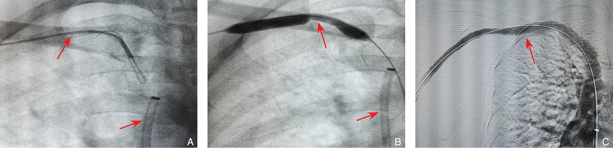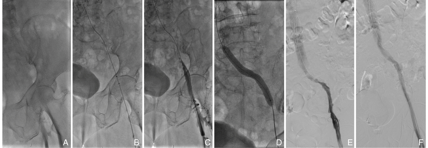 摘要:背景与目的 慢性腔髂静脉闭塞多继发于下腔静脉滤器(IVCF)长期留置,常导致严重的血栓后综合征(PTS)。传统球囊扩张联合支架植入虽可改善短期通畅性,但中远期支架相关并发症和通畅率下降仍是临床难题。本研究旨在评估重复球囊扩张联合末次药物涂层球囊(DCB)扩张治疗慢性腔髂静脉闭塞的有效性与安全性。方法 采用单中心回顾性研究,纳入2022年1月—2024年12月接受重复球囊扩张治疗的慢性腔髂静脉闭塞患者72例,其中62例完成3次标准化球囊扩张方案并纳入分析。术后6个月行计算机断层扫描静脉造影(CTV),按下腔静脉(IVC)是否通畅分为通畅组和闭塞组。比较两组患者IVC通畅率、IVCF回收率、肢体周径、静脉疾病严重程度评分(VCSS)及Villalta评分、PTS分级及CTV影像学参数变化。结果 技术成功率为86.1%(62/72)。术后6个月IVC通畅43例(69.4%)。通畅组IVCF回收率显著高于闭塞组(100% vs. 78.9%,P=0.002)。与术前相比,通畅组膝上及膝下肢体周径显著减小,VCSS和Villalta评分明显改善,PTS严重程度显著降低(均P<0.05);CTV显示IVC中段及起始部横截面积显著增加(均P<0.05)。闭塞组上述指标均未见显著改善(均P>0.05)。围手术期未发生症状性肺栓塞、严重出血、血管破裂或死亡等严重并发症。结论 重复球囊扩张联合DCB扩张治疗慢性腔髂静脉闭塞具有良好的短期通畅效果和安全性,可显著改善临床症状及PTS严重程度,并在一定程度上避免支架植入,为慢性腔髂静脉闭塞的腔内治疗提供了一种可行策略。