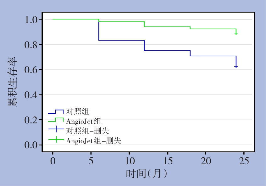 摘要:背景与目的 血栓后综合征(PTS)是急性髂股静脉深静脉血栓形成(DVT)患者最重要的远期并发症之一。AngioJet机械血栓清除术可实现快速血管再通,但其对PTS长期发生风险的影响尚缺乏充分证据。本研究比较AngioJet机械血栓清除术与传统导管接触性溶栓(CDT)治疗急性髂股静脉DVT的长期疗效与安全性,重点评估其对PTS发生率的影响。方法 回顾性纳入2021年1月—2023年6月收治的急性髂股静脉DVT患者100例(发病时间≤14 d),其中52例接受AngioJet机械血栓清除术(AngioJet组),48例接受CDT治疗(对照组)。主要终点为随访24个月内PTS发生率(Villalta评分≥5或出现静脉性溃疡);次要终点包括血管再通率、下肢周径差值、生活质量评分(VEINES-QOL)、主要出血事件、血栓复发率及住院时间。采用Kaplan-Meier法比较PTS累积发生率,并通过Cox比例风险模型分析PTS的影响因素。结果 两组基线特征差异无统计学意义(均P>0.05)。AngioJet组即刻血管再通率显著高于对照组(96.15% vs. 64.58%,P<0.001)。24个月累积PTS发生率AngioJet组显著低于对照组(11.54% vs. 37.50%,P<0.05)。AngioJet组在6、12、18和24个月时的下肢周径差值均明显小于对照组,且各随访时间点VEINES-QOL评分均显著更高(均P<0.001)。两组主要出血事件和血栓复发率差异无统计学意义(均P>0.05),但AngioJet组住院时间明显缩短(P<0.05)。多因素Cox分析显示,AngioJet治疗(HR=0.31,P=0.003)和BMI<25 kg/m2(HR=0.38,P=0.012)为PTS发生的独立保护因素,而血栓累及静脉段数为独立危险因素(HR=2.78,P=0.005)。结论 AngioJet机械血栓清除术可显著降低急性髂股静脉DVT患者PTS的长期发生风险,改善患者肢体功能和生活质量,且安全性良好。血栓范围及体质量是影响PTS预后的重要因素。