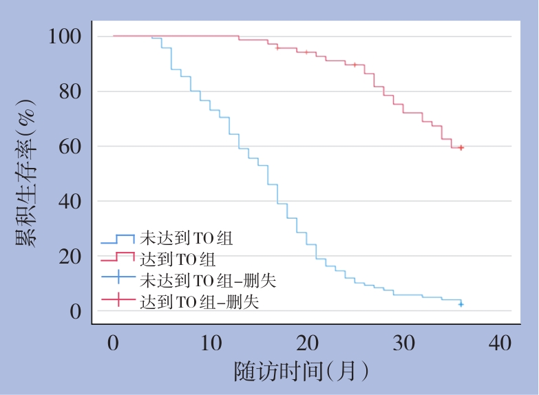 摘要:背景与目的 肝内胆管癌(ICC)根治性切除是唯一可能治愈的手段,但术后复发率高、预后差。近年来提出的“教科书式结局”(TO)作为综合性质量评价指标,其与预后关系尚未充分明确。本研究旨在分析影响ICC根治性切除术后达到TO的危险因素,并探讨TO与生存的关系。方法 回顾性分析2018年2月—2023年2月在中国人民解放军联勤保障部队第九〇四医院接受根治性切除的180例ICC患者临床资料,采用单因素与多因素Logistic回归分析影响TO的危险因素,并应用Kaplan-Meier方法及Log-rank检验进行生存分析。结果 180例患者中66例达到TO。多因素Logistic回归分析显示,术前总胆红素水平>22 μmol/L、术前CA19-9>35 U/mL、最大肿瘤直径>5 cm、肿瘤分化程度差、MVI及淋巴结转移是影响达到TO的独立危险因素(均P<0.05)。生存分析结果表明,达到TO组患者中位生存时间明显长于未达到TO组(36个月vs. 16个月,P<0.001)。结论 术前总胆红素水平>22 μmol/L、术前CA19-9>35 U/mL、最大肿瘤直径>5 cm、肿瘤分化程度、MVI及淋巴结转移是影响ICC根治性切除术后达到TO的独立危险因素。达到TO的患者具有显著更长的生存期,提示TO不仅能够综合反映围手术期的治疗水平,也是预后评估的重要工具。临床上应重视相关危险因素,优化围手术期管理,促进患者达到TO,从而改善远期预后。