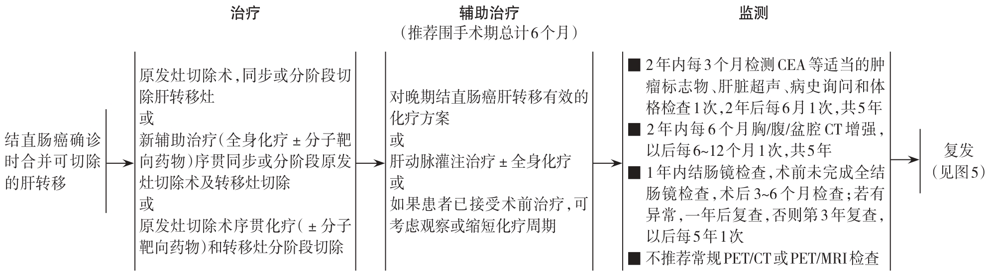 摘要:为进一步规范和提升我国结直肠癌肝转移的诊疗水平,《结直肠癌肝转移诊断和综合治疗指南(2025版)》在以往版本基础上,结合近年来国内外研究进展和临床经验,进行了系统更新。新版指南在优化诊断流程、加强多学科团队协作的基础上,全面升级了治疗策略,涵盖可达到无疾病证据状态(NED)患者的外科手术、辅助与新辅助治疗,及无法达到NED状态患者的综合治疗方案;同时拓展了基因检测内容,引入多种局部毁损新技术,强调规范随访与长期管理,力求实现治疗个体化、精准化,最终改善患者预后。指南旨在为全国医疗机构在结直肠癌肝转移的临床实践中提供循证、实用的参考依据。