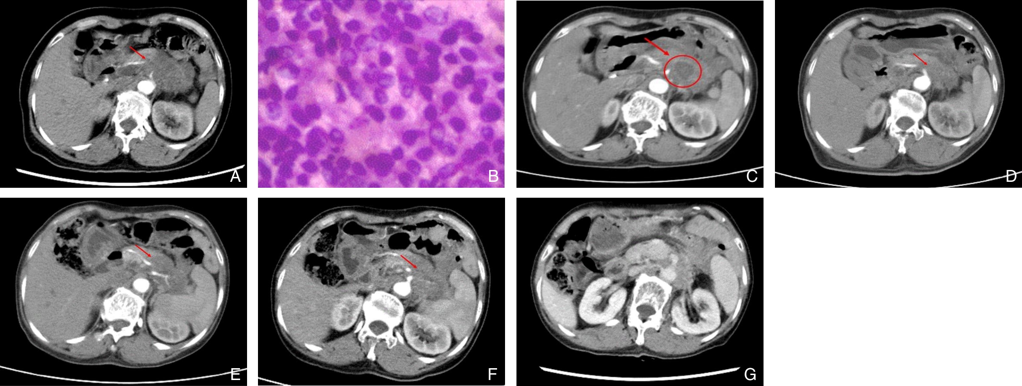 摘要:背景与目的 复发性急性胰腺炎(RAP)病因复杂,其中由寄生虫感染引起者极为罕见。胰腺阔盘吸虫侵入胰管导致梗阻并诱发RAP,目前国内尚无报道。本研究通过1例确诊病例,结合文献复习,探讨其临床特征、诊断难点及防治要点。方法 回顾分析湖南师范大学附属第一医院2023年收治的1例胰腺阔盘吸虫致RAP患者的临床资料,包括影像学、手术及病理学结果,并综述国内外相关文献。结果 患者为59岁女性,表现为反复上腹痛4年。影像学提示胰体尾部多囊性病变并胰管扩张,术前被考虑为胰管内乳头状黏液性肿瘤。行腹腔镜胰体尾及脾切除术后,病理证实导管内存在吸虫虫体及虫卵,最终确诊为胰腺阔盘吸虫感染。术后恢复良好,随访1年未再发胰腺炎。结论 胰腺阔盘吸虫是RAP罕见的病因,临床及影像学表现缺乏特异性,易误诊为胰腺囊性肿瘤。对于病因不明的RAP,尤其是有食用生食或野味史的患者,应重视寄生虫学检查,如粪便虫卵及血清抗体检测,以早期确诊并指导治疗。