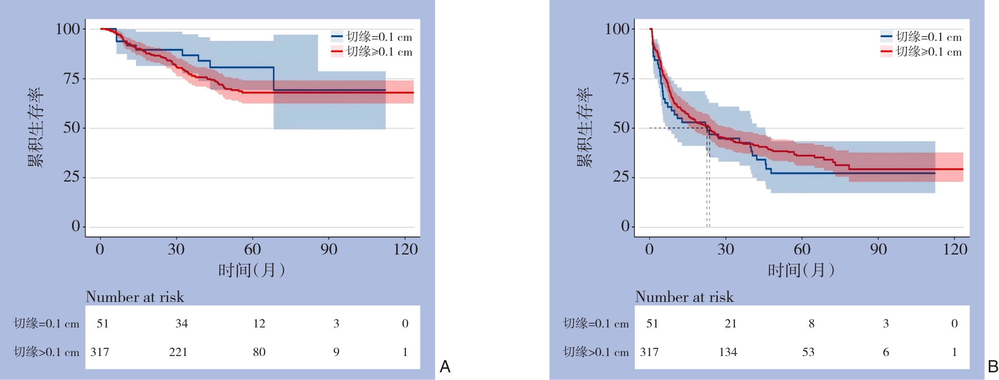 摘要:目的 对于初始不可切除的肝细胞癌(HCC),转化治疗为患者争取根治性切除提供了新的机会。然而,转化治疗后手术的最佳切缘宽度尚无共识。本研究旨在探讨转化治疗后肝癌切除术中切缘宽度对预后的影响,并分析影响转化治疗后手术疗效的独立预后因素。方法 回顾性分析2015年2月—2022年6月于中山大学肿瘤防治中心接受转化治疗后行根治性切除的413例初始不可切除HCC患者的临床资料。依据术中病理实测切缘,将患者分为肿瘤切缘<1 cm与≥1 cm两组,并进一步分为切缘=0 cm、=0.1 cm和>0.1 cm亚组,比较组间生存差异。采用Kaplan-Meier法及Cox回归模型评估无瘤生存期(DFS)和总生存期(OS)及其影响因素。结果 切缘<1 cm组与≥1 cm组的3年OS及DFS均无明显差异(均P>0.05)。相比之下,切缘=0 cm患者的OS明显低于切缘=0.1 cm者(P=0.048),但切缘=0.1 cm与>0.1 cm患者的OS及DFS差异均无统计学意义(均P>0.05)。多因素分析显示,多个肿瘤、低分化及微血管侵犯是OS和DFS的独立不良预后因素(均P<0.05),靶向治疗对DFS具有保护作用(P=0.014)。结论 转化治疗后HCC根治性切除的安全切缘阈值可降低至0.1 cm。传统≥1 cm切缘标准未能带来额外的生存获益。病理切缘≥0.1 cm可显著改善患者OS,而零切缘切除则增加复发和死亡风险。多灶性、低分化及微血管侵犯提示转化治疗后手术患者预后不良,术前靶向或免疫治疗可能改善生存结局。