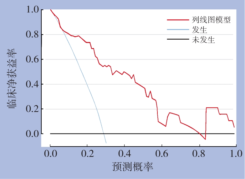 背景与目的 腹腔镜胆囊切除术(LC)是胆石症的常用治疗方式,但术后胆总管结石复发仍较为常见,严重影响患者预后。目前针对其复发风险的综合预测研究相对不足。本研究旨在分析LC术后胆总管结石复发的影响因素,并构建风险预测模型,为临床个体化管理提供依据。方法 回顾性分析2020年12月—2023年11月甘肃省庆阳市人民医院行LC治疗并完成1年随访的107例胆石症患者,根据是否发生胆总管结石复发分为复发组(n=19)和未复发组(n=88)。采用多因素Logistic回归分析筛选LC术后胆总管结石复发的独立危险因素,并基于回归结果构建列线图模型,通过一致性指数、校准曲线、决策曲线分析及受试者工作特征(ROC)曲线评估模型的预测性能。结果 单因素分析显示,复发组结石数量≥2个、胆总管直径≥15 mm、胆总管扩张、胆道感染、乳头旁憩室、术中胆道口括约肌切开比例以及总胆固醇、低密度脂蛋白胆固醇水平均高于未复发组(均P<0.05)。多因素Logistic回归分析表明,结石数量≥2个(OR=2.158,95% CI=1.510~3.082)、胆总管扩张(OR=2.726,95% CI=1.778~4.180)、乳头旁憩室(OR=2.250,95% CI=1.569~3.227)及总胆固醇水平升高(OR=2.524,95% CI=1.692~3.765)是LC术后胆总管结石复发的独立危险因素(均P<0.05)。基于上述因素构建的列线图模型一致性指数为0.866(95% CI=0.814~0.918),校准曲线显示预测值与实际值一致性良好;ROC曲线下面积为0.872(95% CI=0.820~0.924),敏感度为91.59%,特异度为67.96%。决策曲线分析显示模型具有较好的临床净获益。结论 结石数量、胆总管扩张、乳头旁憩室及总胆固醇水平是LC术后胆总管结石复发的重要影响因素。基于上述因素构建的列线图模型具有较高的预测效能,可为LC患者术后复发风险评估及随访管理提供参考。